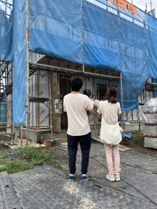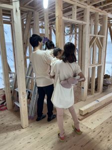 建主様に建築中の建物をみてもらい