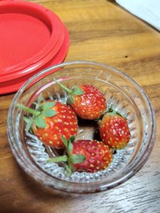 庭の畑でイチゴがとれましたグッド (上向き矢印)