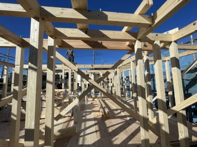 昨日の上棟はほんとに良く晴れて上棟日和な一日でした。