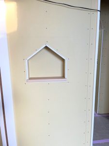 ニッチ(小物や絵などの飾り棚として使うために壁の一部をへこませた部分のこと)施工が終わってよ!と棟梁からLINEをもらい長島『か、かわいい❤』と感激しI様へ写真を送りました✉