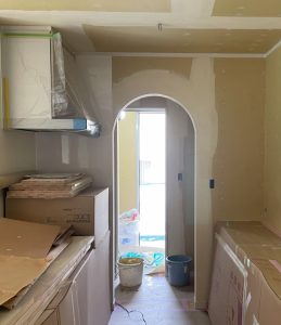 壁紙を貼るといっきに部屋になります。完成が近づいてきましたね。たのしみです。