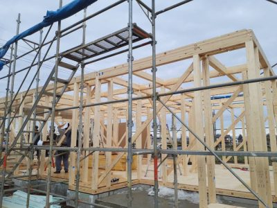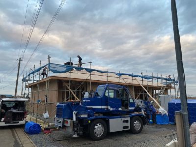大工さんやクレーンさんに安全に作業を進めていただきました