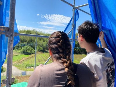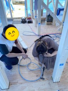 ご夫婦で協力しながら、金づちで叩いている音を棟梁が聞いていると『おっ!いい音だね!筋がいいね』