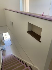 階段を上がったところにニッチがありますが、実はクロス2色使いです!!