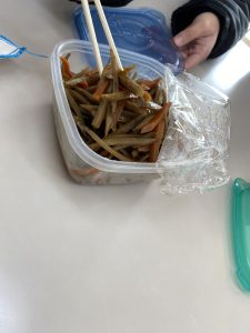 今日のお昼には社長のお母さんよりきんぴらごぼうをいただきました
