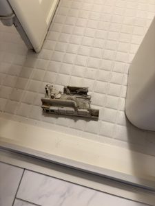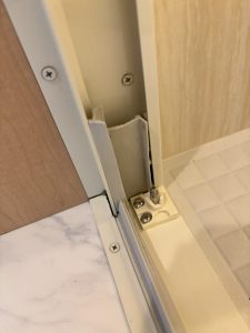 お風呂の扉を清掃してみました。7年間手を入れていない未開の場所との事です。写真伝わりにくいですが扉の吊元側の付け根です。