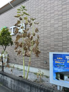 去年のヒマワリの種からこんなに大きくなりました