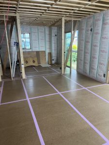 床が貼り終わりましたので養生しました