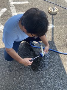 気分よく洗車をしていた時、、、撮影している長島に水をかけたりして楽しんでいた国武店長