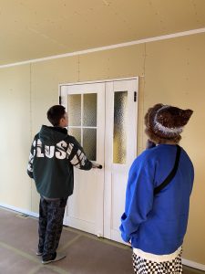 施工中のお家をご見学頂いております(*´▽`*)リビングのドアが広く開放される親子扉を選んで頂き、