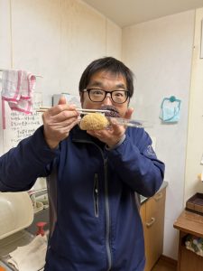 千野社長母様がスタッフに、ぼたもちを