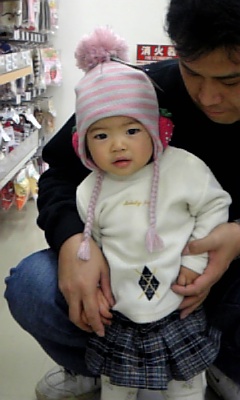 家の近くのヨーカドーに行き、帽子をかぶせたり・・・色々体験をさせました