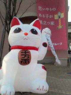 駐車場を入ると大きい招き猫がお出迎えしてくれます