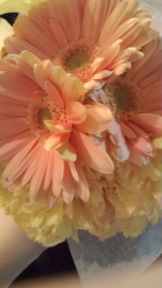 最後のお見送りの際に新婦さんよりいただいたお花は今、幸せになるように給湯室に 飾ってあります