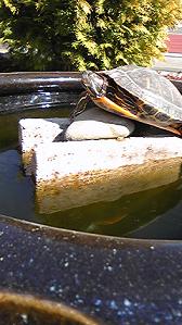 たびたびブログにも登場していますが、冬眠から覚めた みどりちゃんはまた更に成長したような・・・ 暖かい日は石の上で甲羅干しをしています