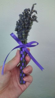 ラベンダーのお花を切り、リボンで可愛くコーディネートしてありました
