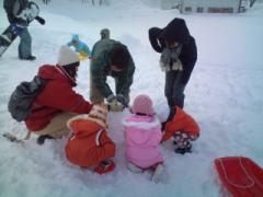 みんなで大きな雪だるま作って