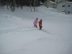 おそるおそる新雪の中を歩き