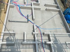 床下の配管施工の確認に伺いました。配管経路、勾配などの確認です。 床を貼ってから...