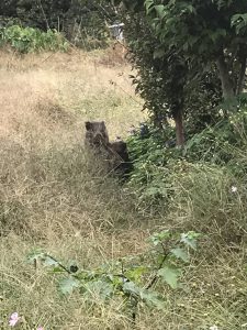 現場にてイノシシに遭遇しました。自然豊かな環境です。まだ小振りなイノシシでしたが...