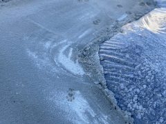 基礎工事がスタートしました。捨てコンクリートの上に侵入者の痕跡が‥‥ ニャンズが...