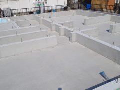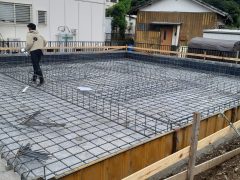 改良工事が終わって基礎工事に進みました。 鉄筋を組んでコンクリートを打設していき...