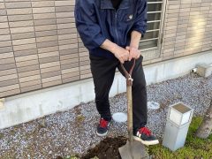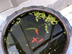 こんにちは 国武です サンキホームの玄関の横に、大きな水ガメがあります そこへ金...