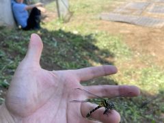 全然逃げないトンボ…暑くてばて気味ですかね? 奥のぼやけてる人は…ばて気味の長島...