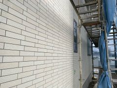 施工中の現場です。外壁のタイル工事がほぼ終了しました。 タイルの建物はその質感か...