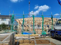 こんにちは 国武です 今日、東松山市で上棟でした 柱が一気に立ち上がりお家の形に...