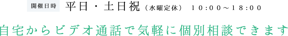 外出を控えている状況の中、自宅や都合の良い場所から相談できます。来店する移動時間は有意義にお使いください。
