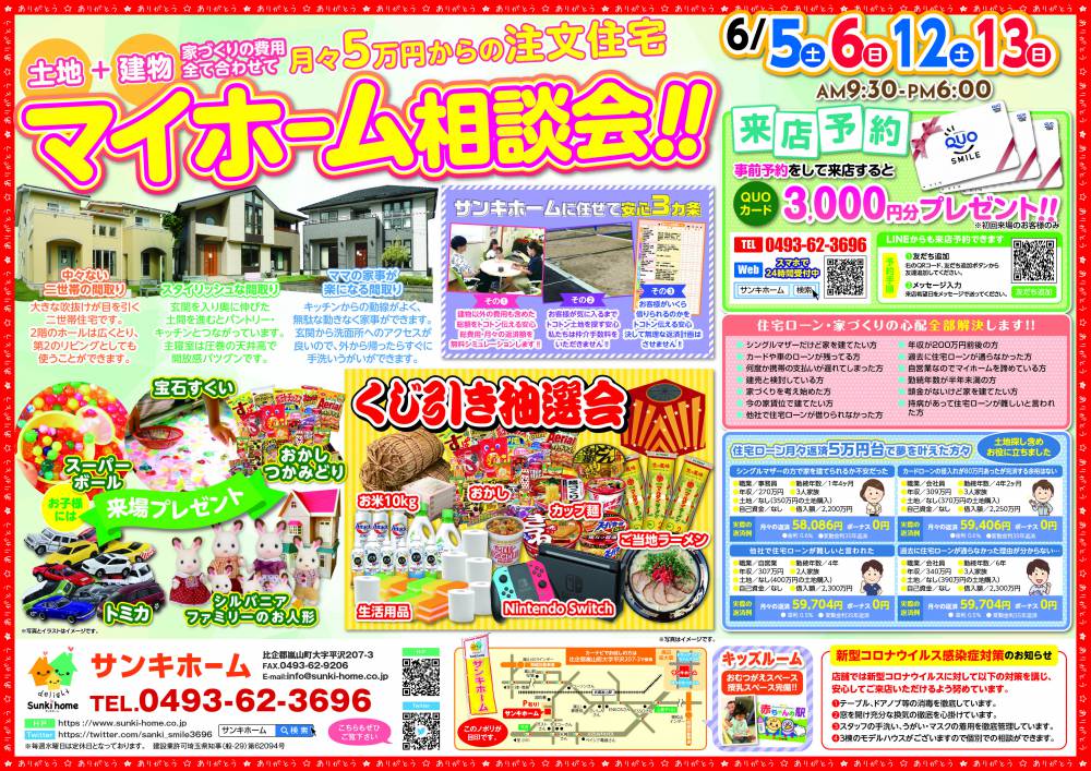 来店予約プレゼント クオカード3,000円分 イベント マイホーム相談会!!開催 日時 6.5(土)~ 6.13(日) 開催場所 埼玉県比企郡嵐山町平沢207-3