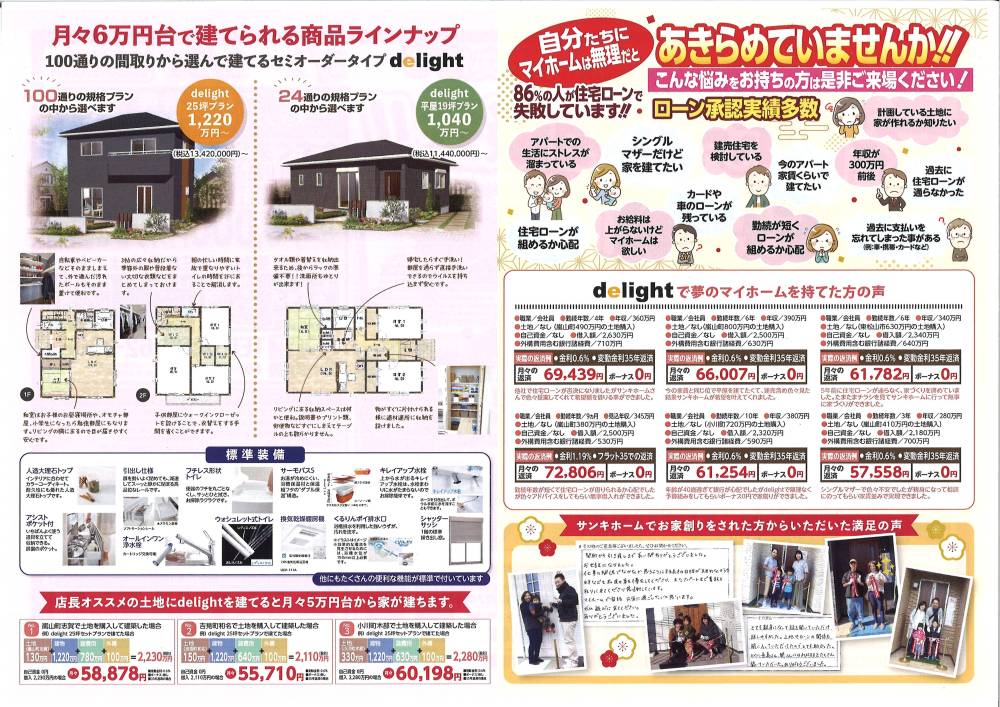 土地+建物 家づくりの費用全て合わせて 月々6万円からの注文住宅