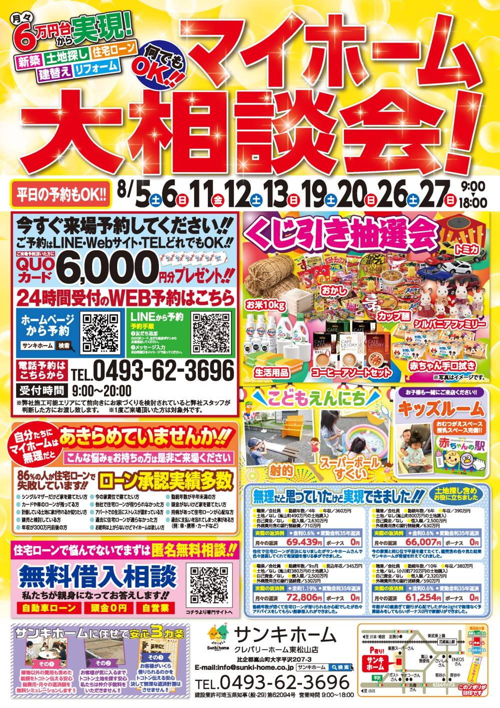 来店予約プレゼント クオカード6,000円分 イベント マイホーム大相談会!! 日時 8.1(火)~ 8.31(木)  開催場所 嵐山町平澤207-3
