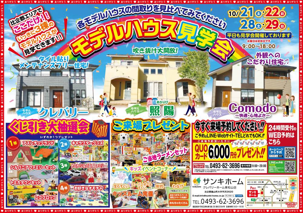 来店予約プレゼント クオカード6,000円分 イベント モデルハウス見学会 日時 10.23(月)~ 10.29(日)  開催場所 埼玉県比企郡嵐山町平澤2620