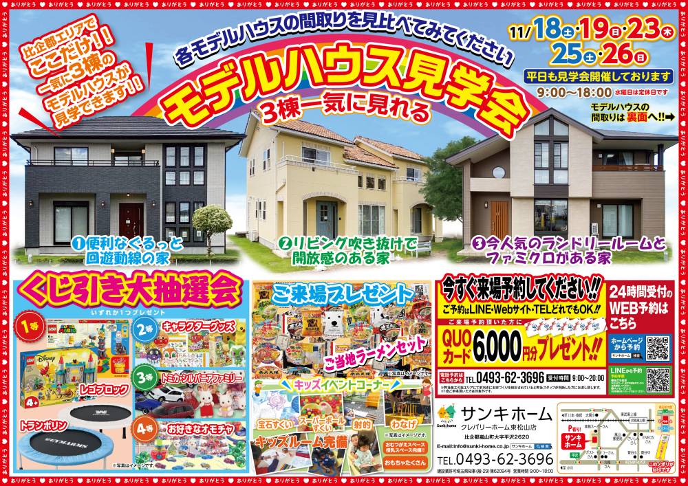 来店予約プレゼント クオカード6,000円分 イベント モデルハウス見学会 日時 11.25(土)~ 11.30(木)  開催場所 埼玉県比企郡嵐山町平澤2620