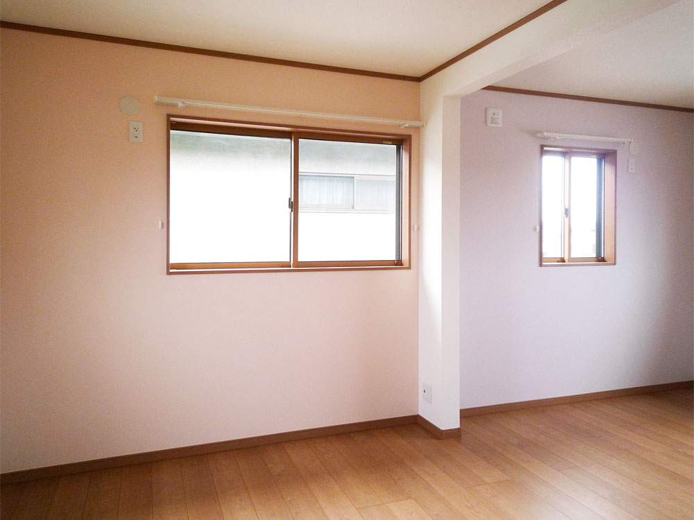 将来は真ん中で仕切れる子供部屋です。クロスの色もとても可愛いです