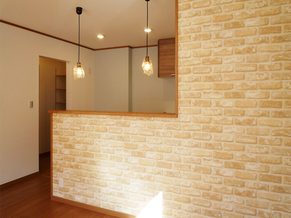 明るく可愛いキッチンは照明もポイントです