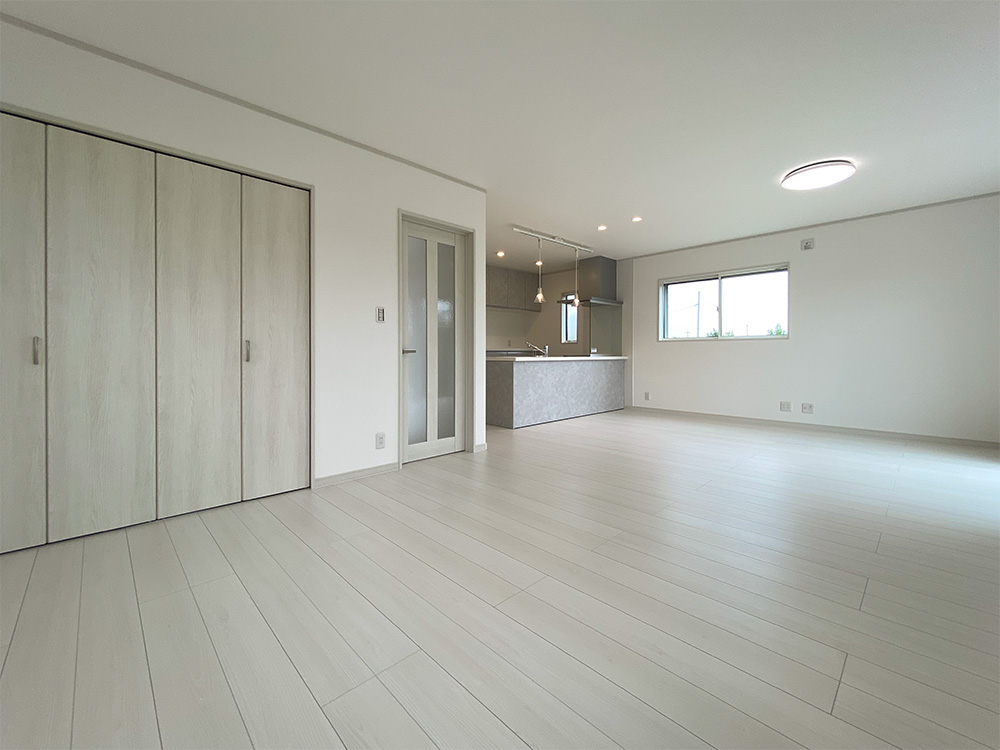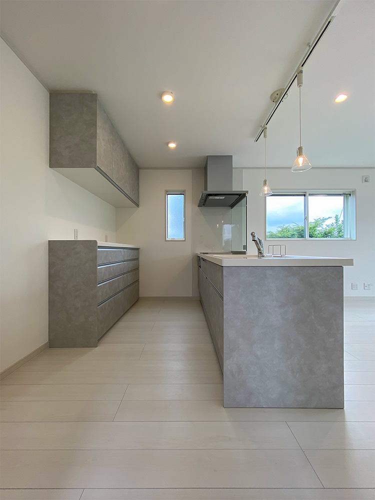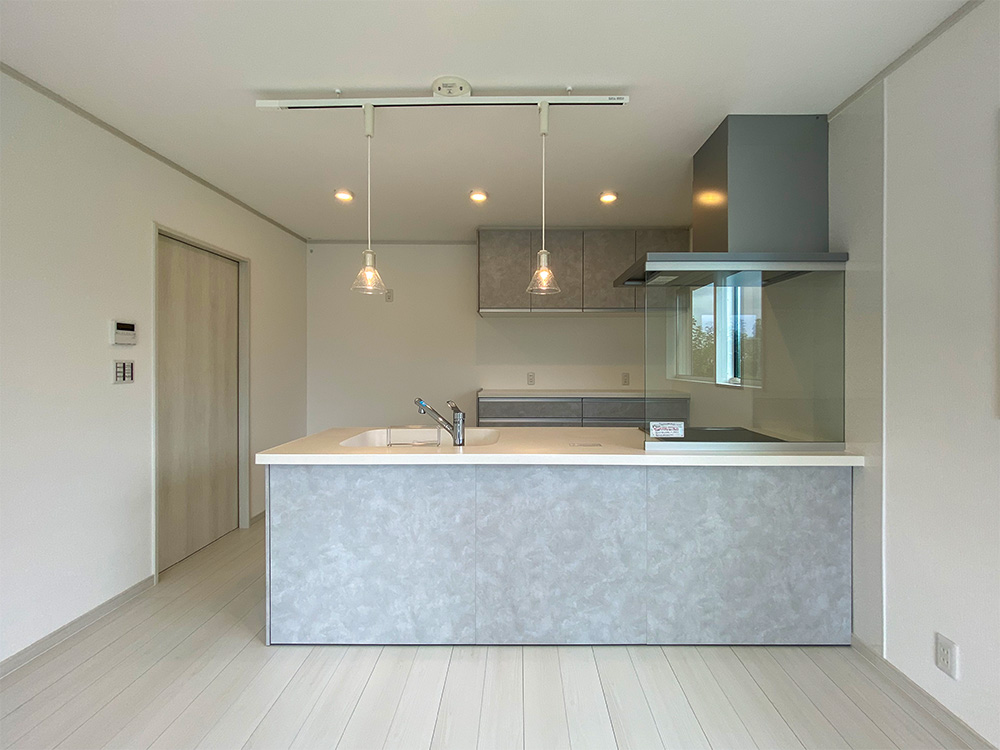 使いやすい対面フラットキッチン リビングにいるお子様にもよく目が届きます