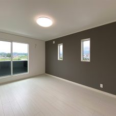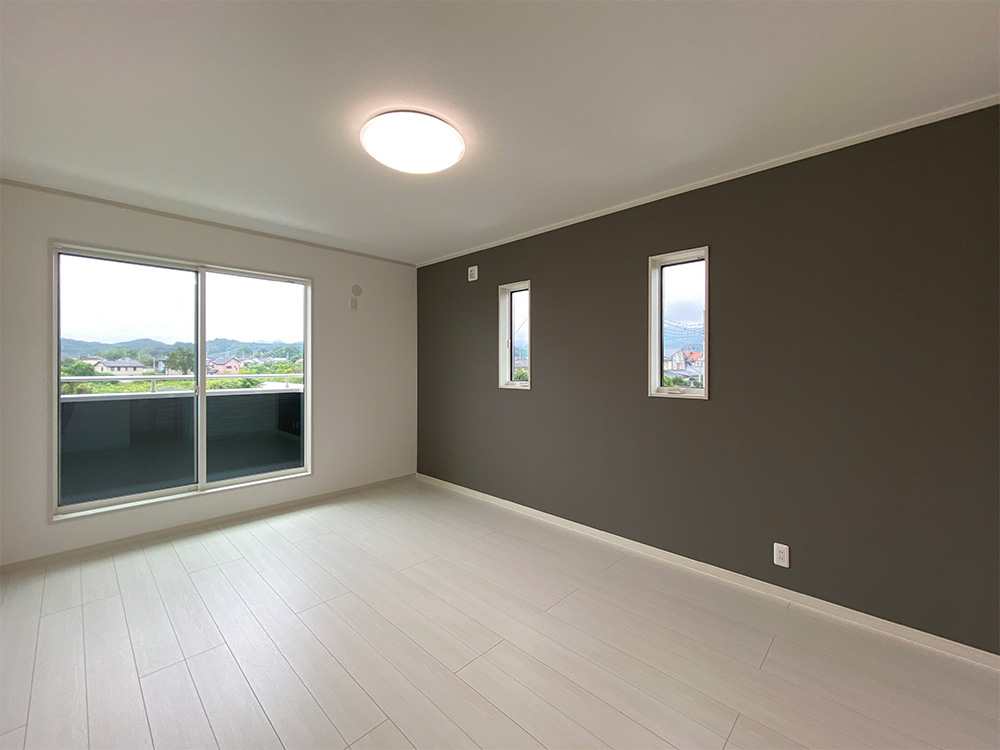 寝室の壁の一面をアクセントクロスで落ち着いた空間に