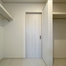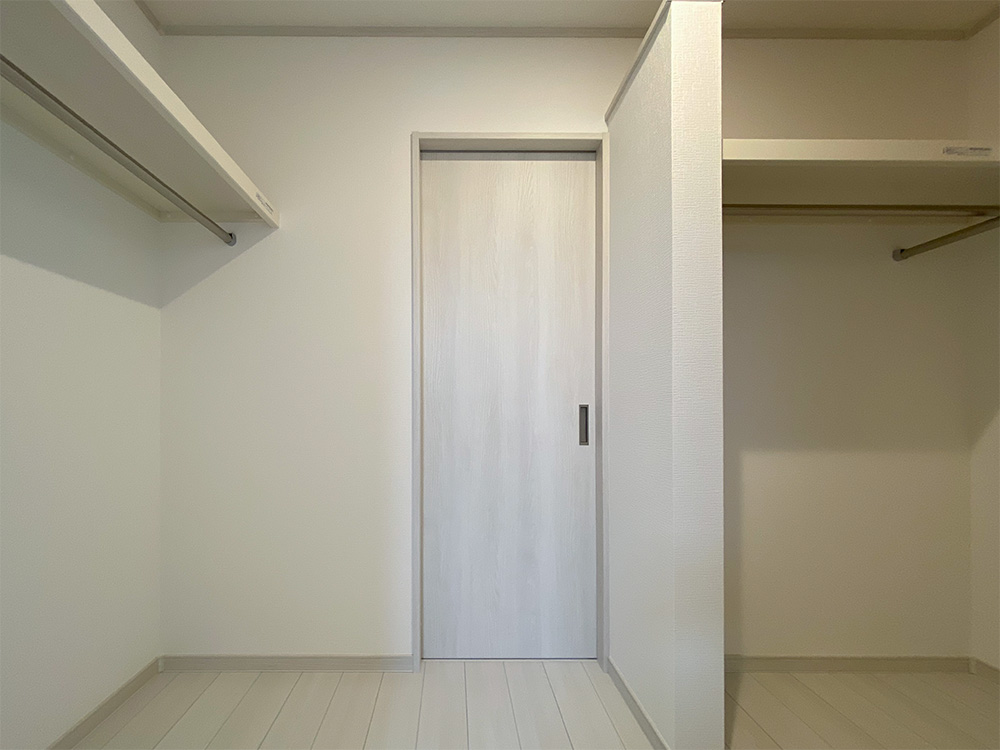 ウォークインクローゼットにはパイプを付けて掛ける収納に