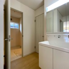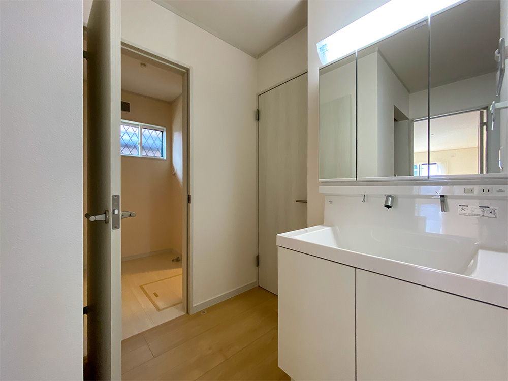 洗面台は独立させて帰ったらすぐに手洗いうがいをする事ができます