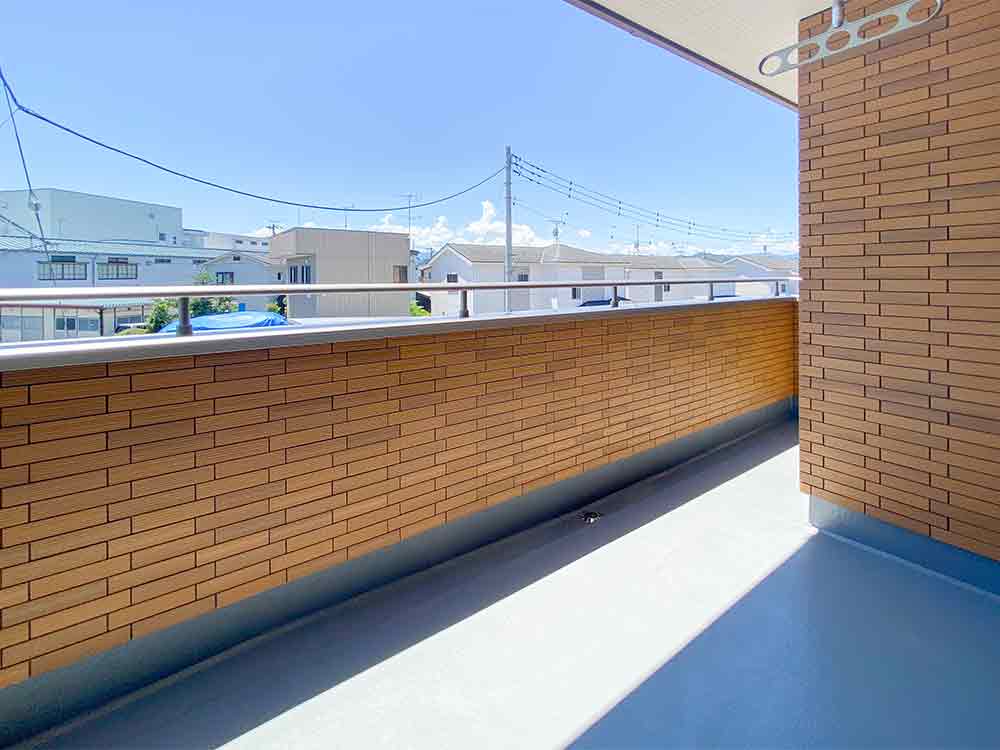 バルコニーの一部は奥行きを取って急な雨でも洗濯物が濡れません 広いベランダで布団も一気に沢山干せます