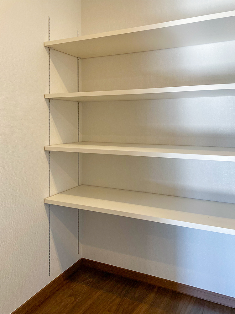 パントリーは棚板を設置し用途に合わせて高さを変える事ができます