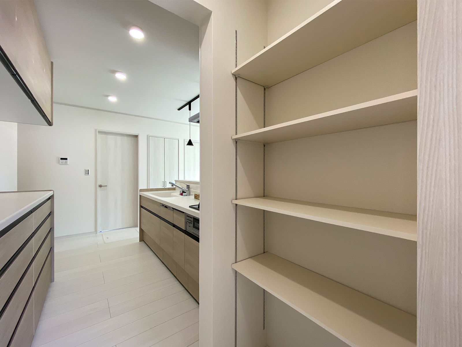 キッチンの横には大容量のパントリーを設置 たくさん買い物をしてもストックができます