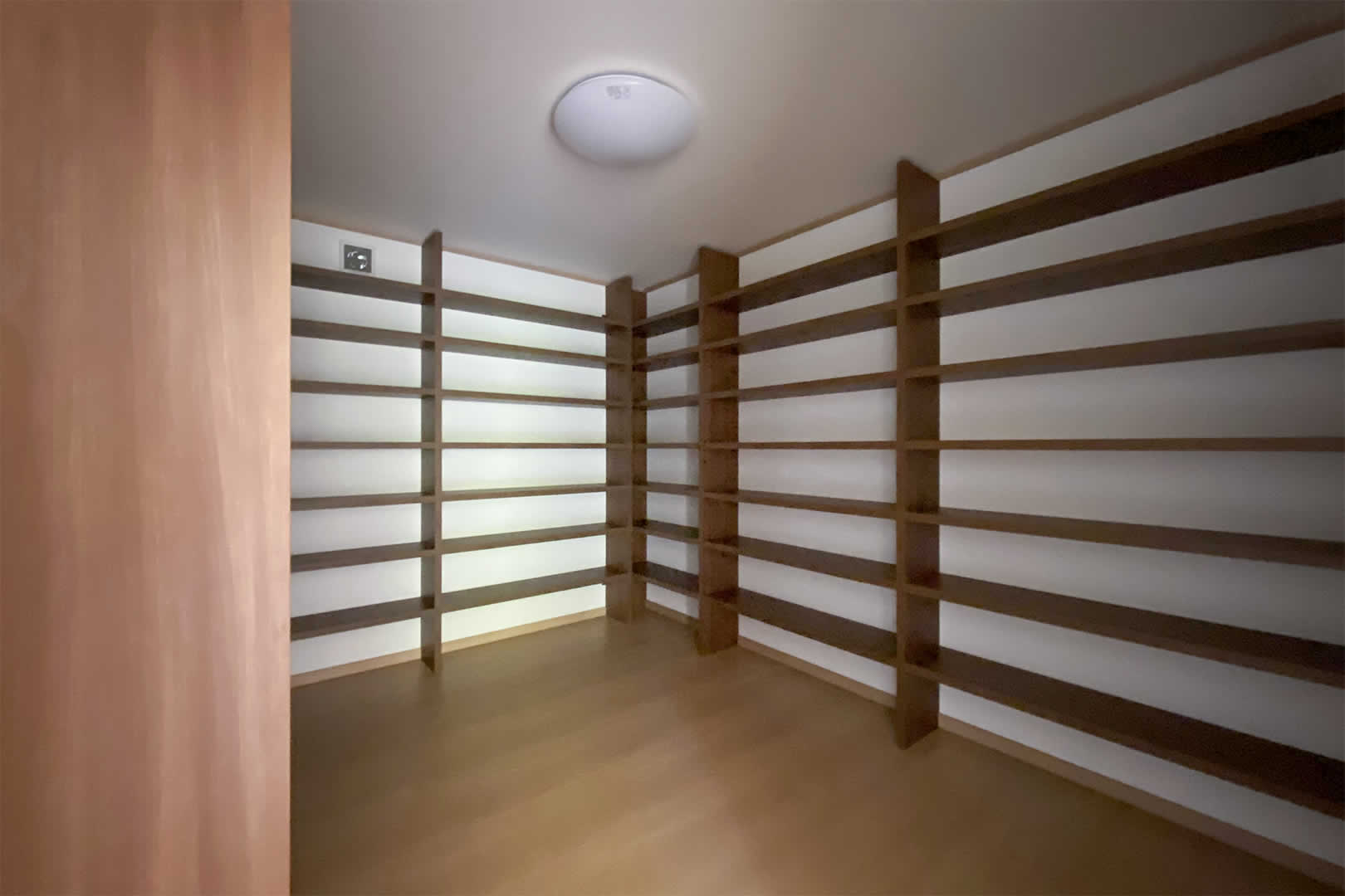たくさんある漫画や本を収納するために、作り付けの棚を作りました。誰にも邪魔されない自分だけの癒しの空間です。