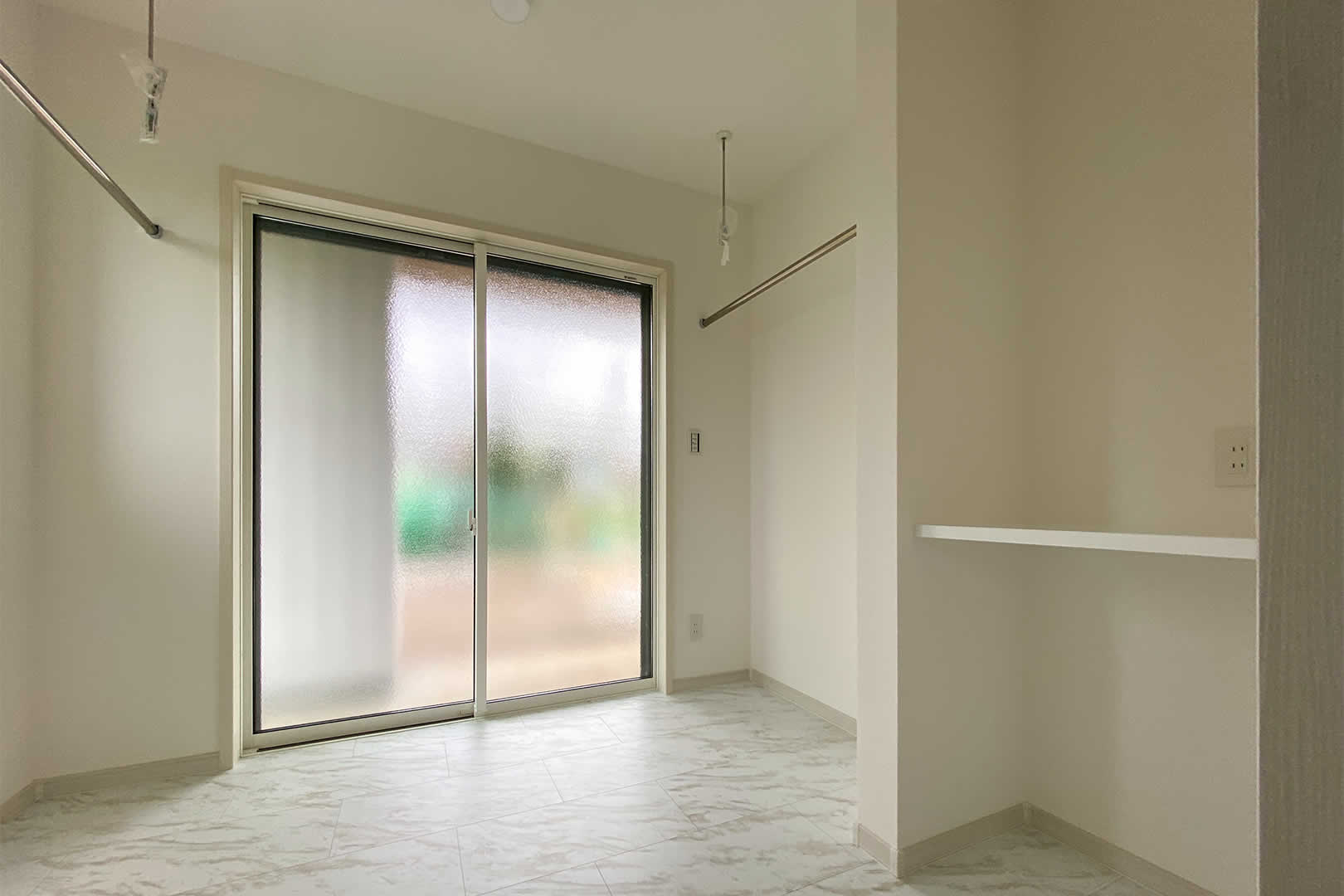 間取りの中でも、一番奥のプライベートスペースに水まわりがあるので、気軽に洗う→干すがどんなタイミングでもできます。お風呂→洗面・脱衣→ランドリースペースと、水まわりを一直線で動ける時短楽の動線に共感ポイント高めです。