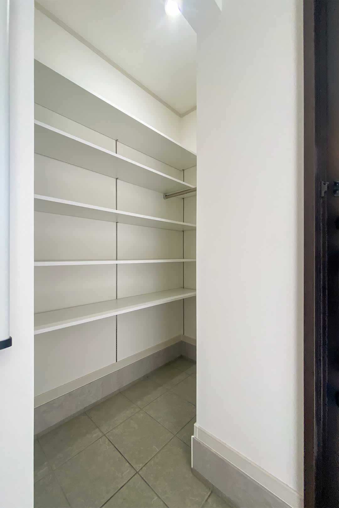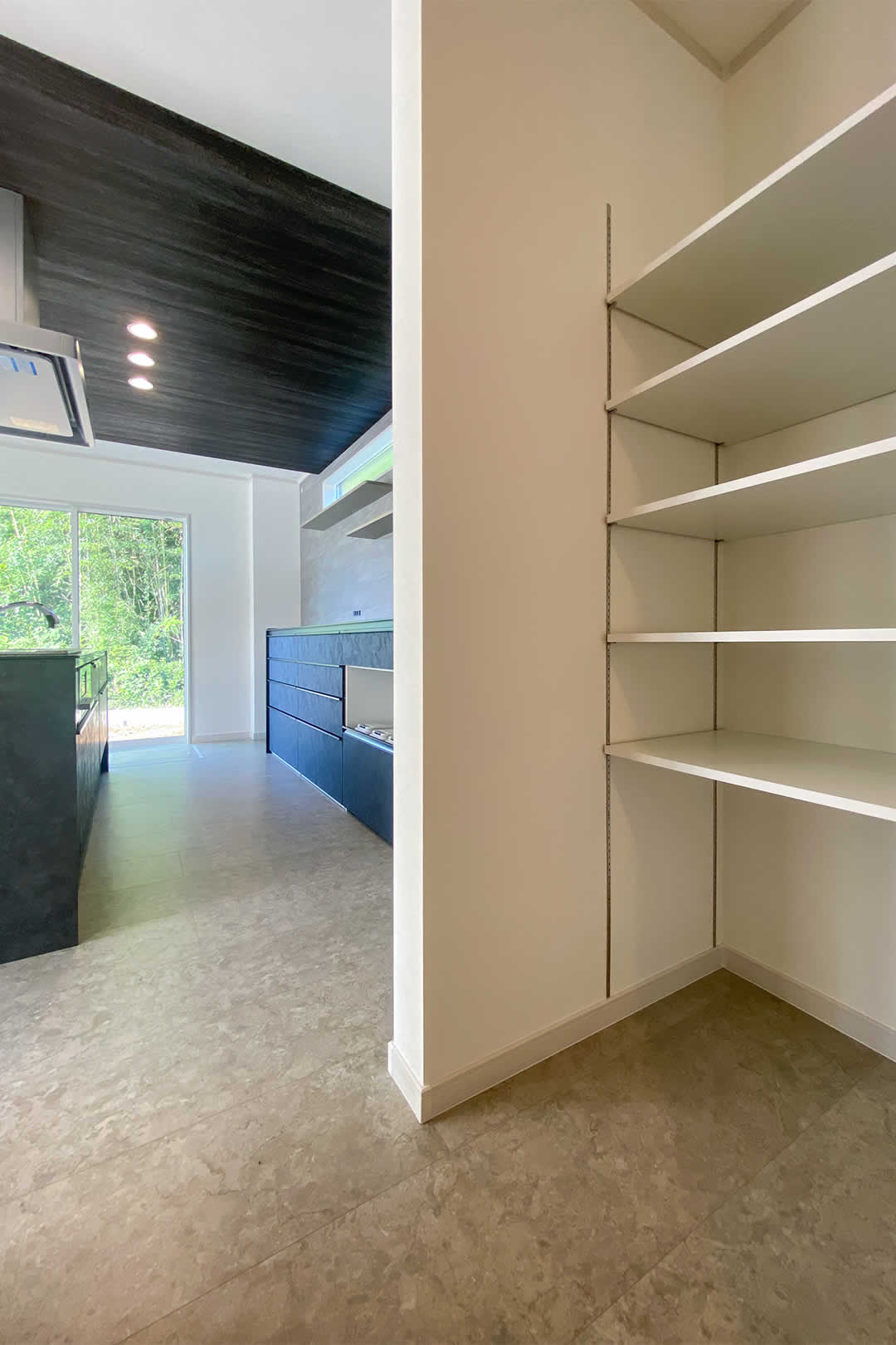 パントリーが近くにあるので、調理中に必要なものを必要な分だけ用意できてキッチンが散らかりません。