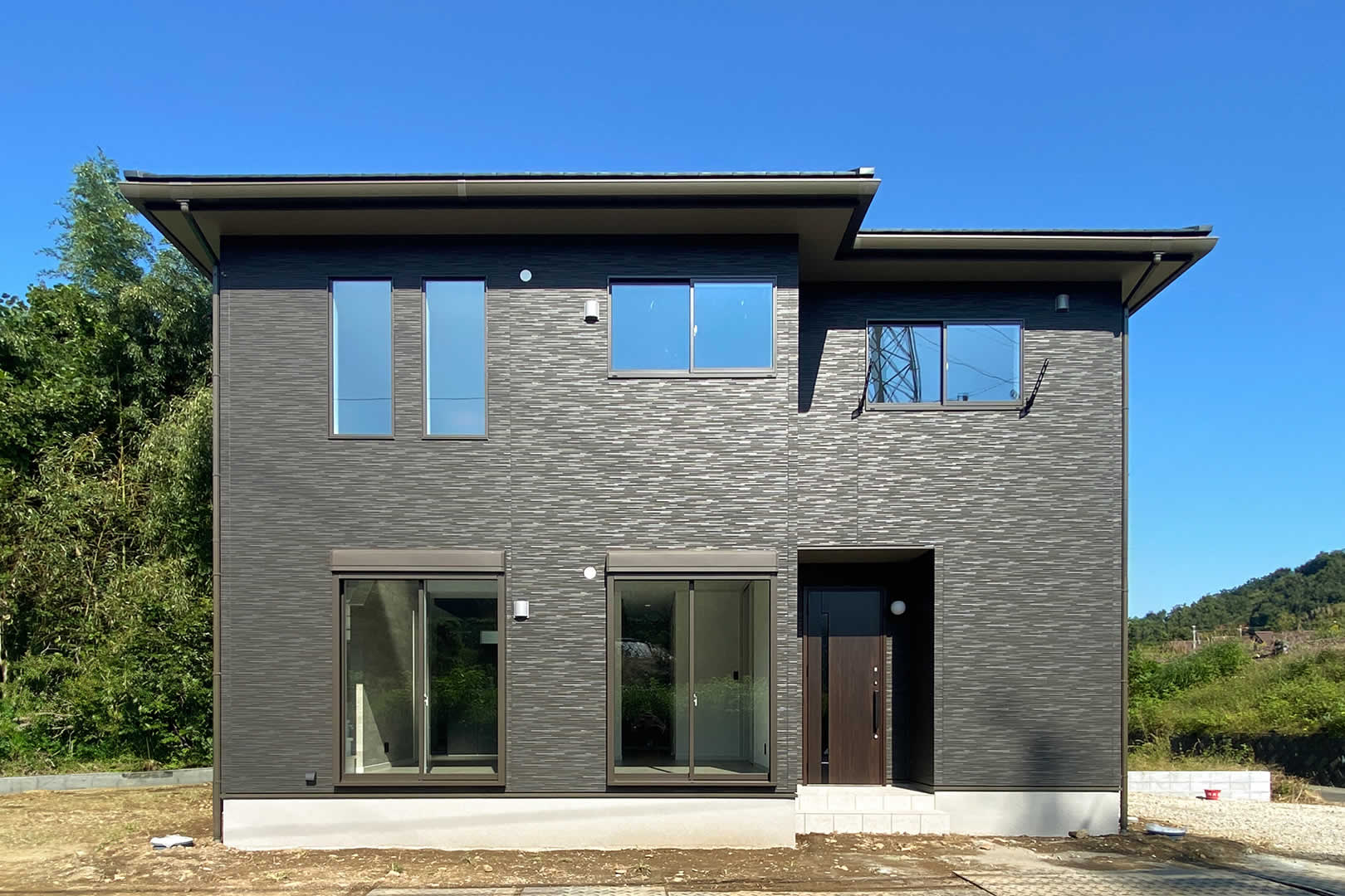 バルコニーを作っていない黒い外壁はスッキリとした高級感があります。