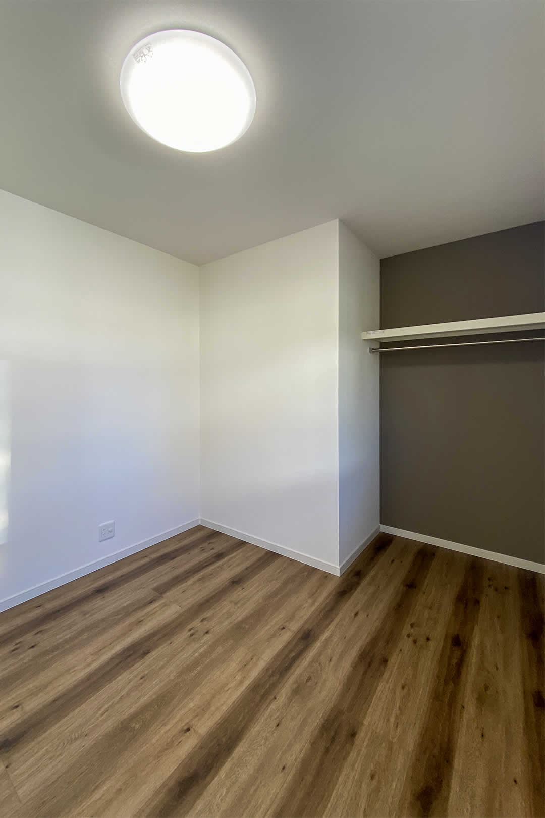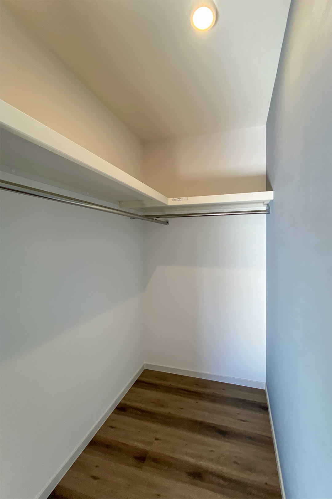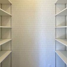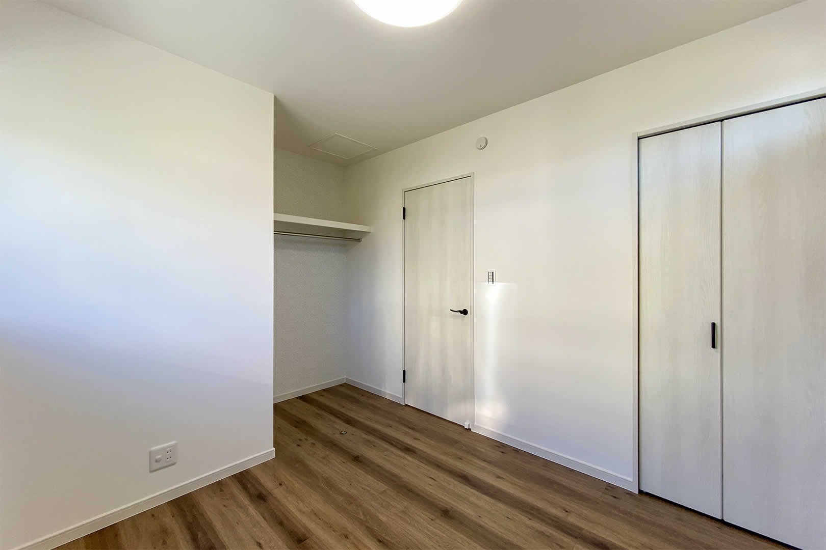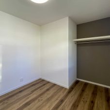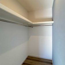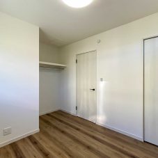4.5帖の洋室2部屋とも、クローゼットの扉を外しました。外したことで家具のレイアウトが自由になります。クローゼットの壁にはアクセントクロスを貼ることで雰囲気が変わりました。